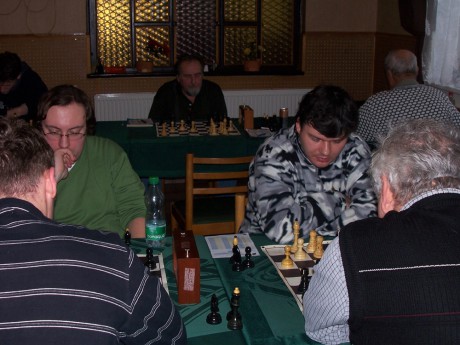 Dan Železný stál s p.Uhlířem dlouho velmi dobře, ze složité pozice však nakonec vyšel bez dámy za věž. Michal Fokt potřetí ze 4 zápasů schytal starého známého z mládeže, tentokrát Petra Křepelku. V pozadí sendražické béčko válčí s Kutnou Horou.